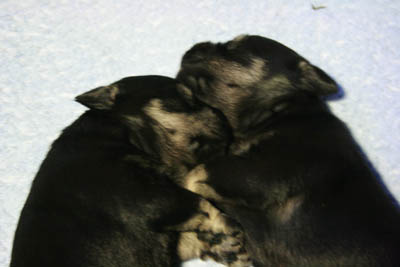 Pennut katselevat koiranuniansa äännähdellen ja värähdellen, toistensa lämmöstä nauttien.